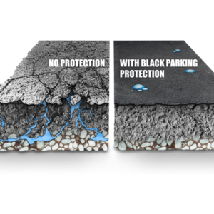 AMPERE BLACK PARKING retarde le vieillissement et la dégradation en surface des enrobés bitumineux (pluie, neige, gel…)
