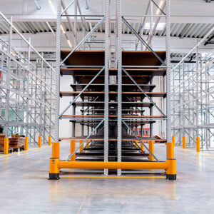 Die Anfahrschutzsysteme werden am Ende einer Regalreihe installiert und schützen somit das Regal in seiner gesamten Breite vor Anfahrschäden.