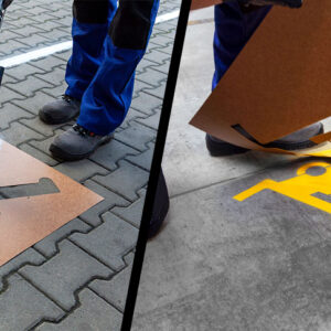 Pochoirs en carton pour la signalisation de parkings.