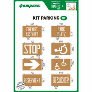 Bestehend aus 8 Schablonen mit Texten und Symbolen:- Einfahrt/Ausfahrt (Buchstabenhöhe 230 mm, Wortbreite 655 mm)
