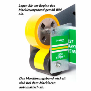 Mit dem Zusatzkit Tape Striper®, können Sie jetzt auch die Traffic Tape® Bodenmarkierungsbänder einfach mit dem Bodenmarkiergerät New Perfekt Striper® anbringen.
